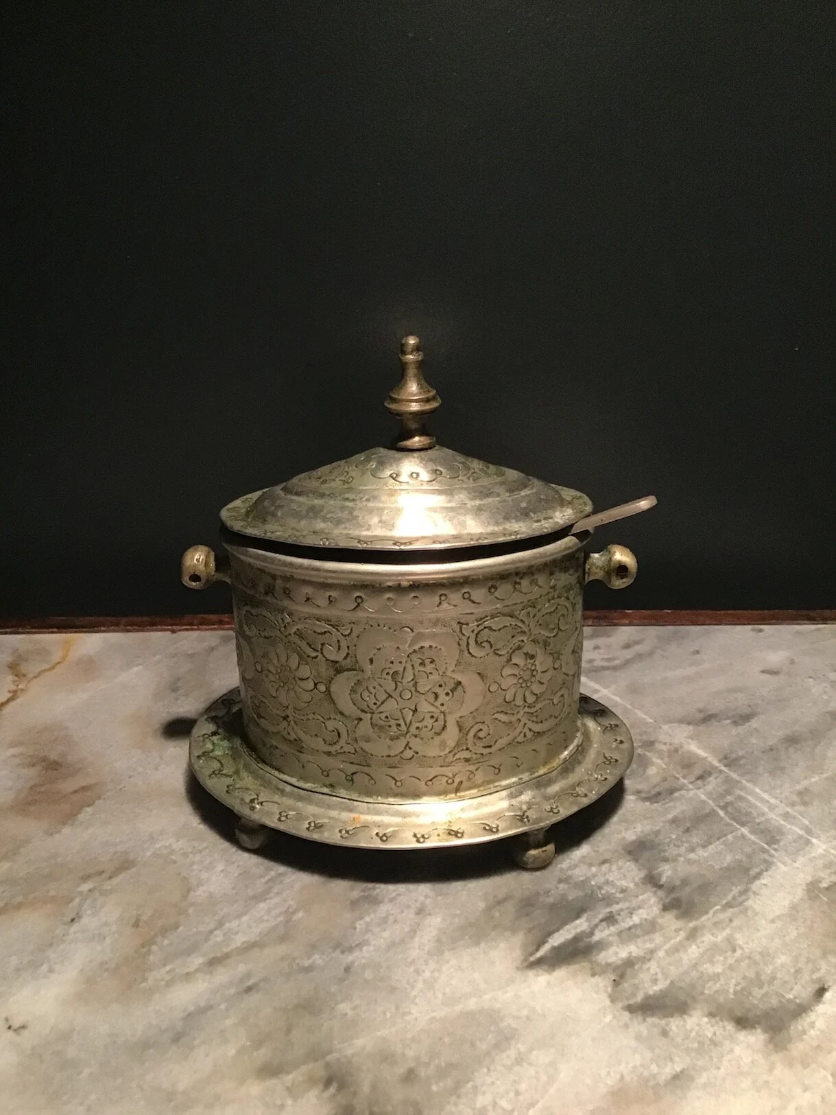 En medio del laberinto que tejen los zocos de la medina de Marrakech, donde se suceden herreros, carpinteros, joyeros, boticarios, tintoreros y tantos otros oficios, dimos con una ventana por la que se asomaba un viejito ciego al que le compramos este azucarero. Fue un mediodía, de regreso de una visita a la deslumbrante medersa Ben Youssef, durante ese único viaje a Marruecos que, hasta donde recuerdo, fue nuestro primer contacto con un mundo exótico a nuestros ojos.