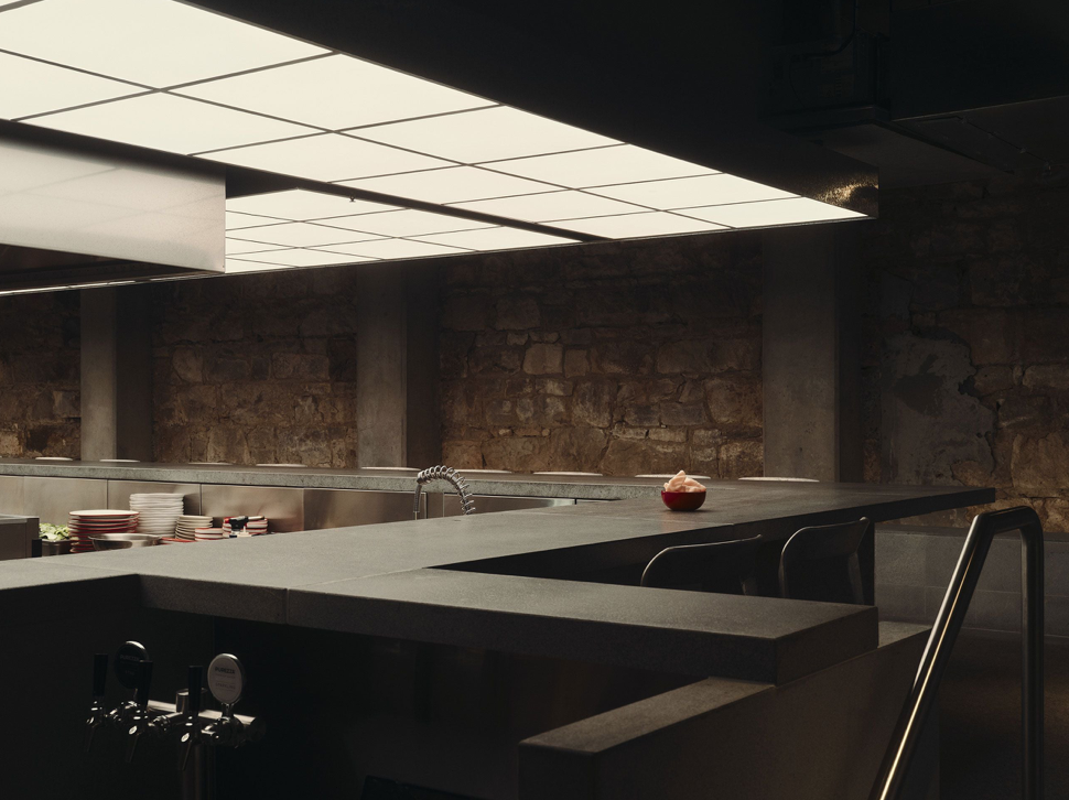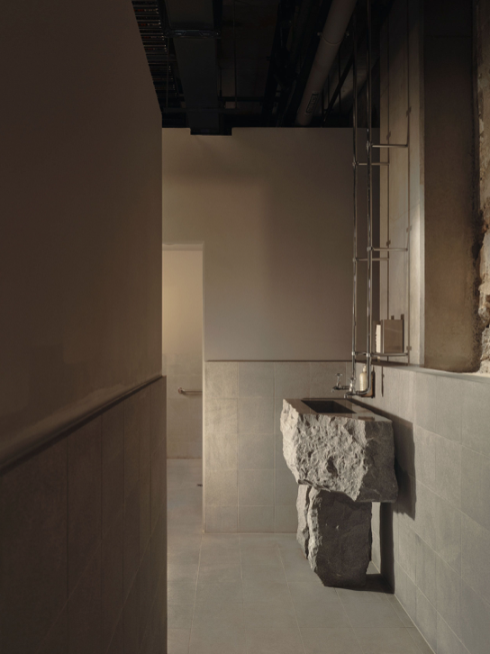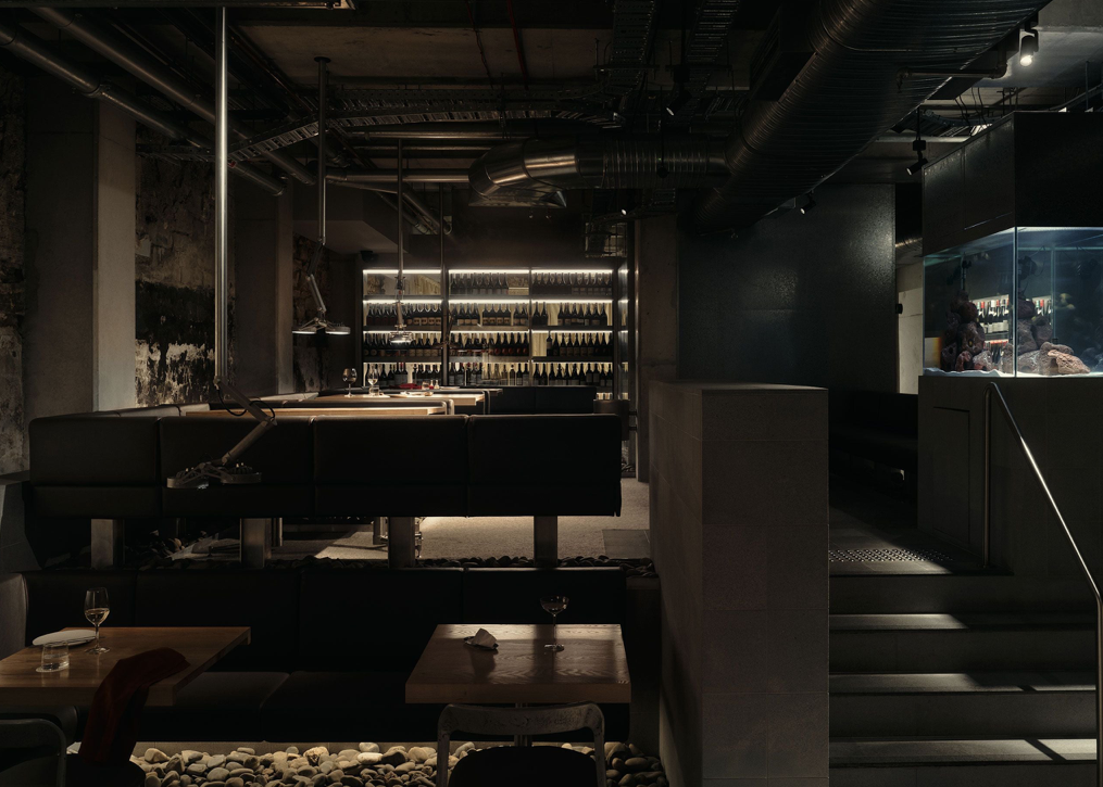 La reconversión del lugar, a cargo del arquitecto Jared Web, de J.AR Office, puso en valor las paredes de roca volcánica (típica de los grandes edificios públicos de la ciudad), mantuvo y resaltó su rugosidad y le sumó la modernidad del acero inoxidable y el granito jaspeado para dotar al ambiente de una estética industrial digna del siglo XXI, pero que al mismo tiempo no desmintiera la personalidad del sótano, con sus techos bajos, su poca luz y sus limitaciones de ventilación natural.